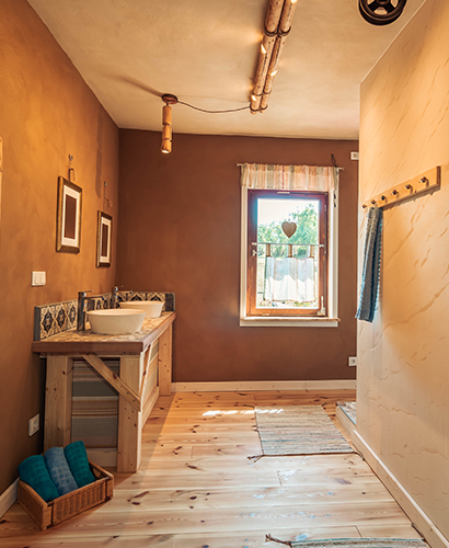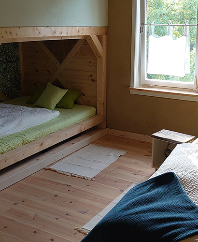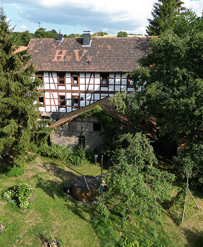 Unsere Mühle ist weit über 100 Jahre alt. Sie wurde liebevoll umgebaut und renoviert. Die vorherrschenden Baustoffe sind Lehm und Holz. Wir sind bemüht, beim Bau und bei der Ausstattung möglichst natürliche Materialien zu verwenden.